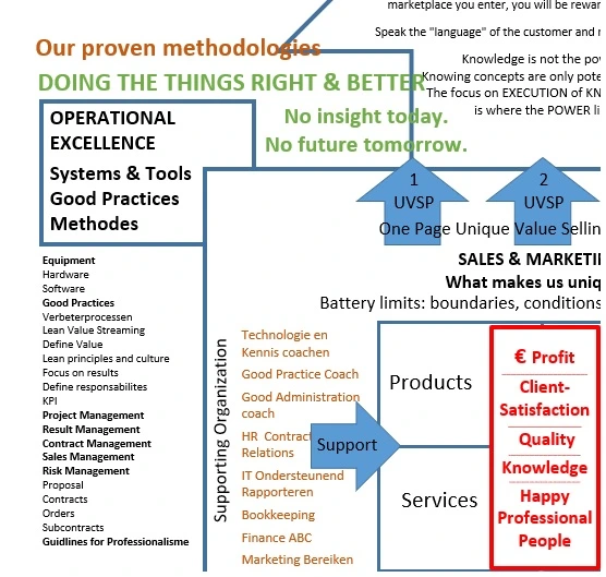 NET4CE brengt orde, structuur en sturing door het bedrijf eerst scherp te zetten met drie vragen: wat doen we, hoe doen we het en vooral waarom. Daarna toetsen we de organisatie aan vier fundamenten en maken we zichtbaar waar de hefboom zit: